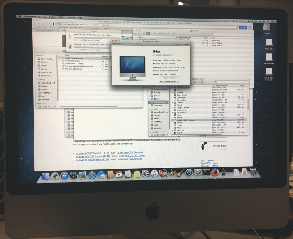 L'iMac fait partie de la gamme tout-en-un d'Apple depuis 1998. L'iMac 21,5" de 2009 est sorti au début de l'année 2009. Cet ordinateur a été acheté le 09 décembre 2009 et il a été utilisé par une doctorante de mon laboratoire pour des travaux de lexicographie et de lexicologie. Le système d'exploitation utilisé à l'époque était le macOS X 10.6 Snow Leopard.
