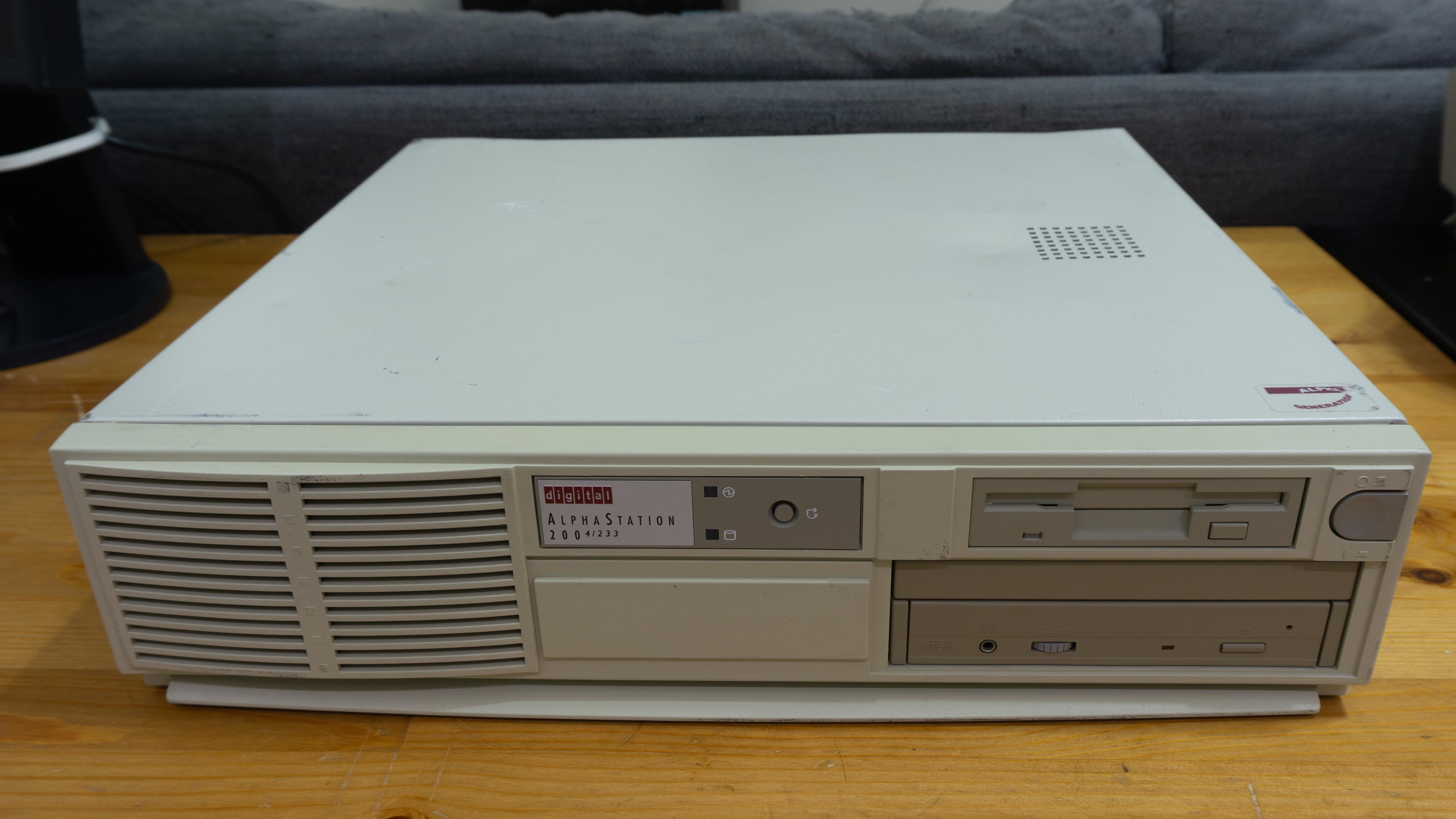 L'ordinateur DEC AlphaStation 200 était l'une des machines que j'ai pu installer, elle était équipé d'un processeur Digital DEC chip 21064A-6, cadencé à 233 MHz, d'une architecture Alpha, d'une capacité de mémoire vive à 32 GB, doté d'extensions internes comme les slots PCI, ISA et des slots Combo PCI/ISA, d'une carte graphique S3 TRIO 64 PCI Graphics, d'un disque dur interne Seagate ST32430 2.1GB 5400 RPM SCSI, d'un stockage externe Digital RRD45 4x SCSI CD-ROM, d'un lecteur de disquette 3"1/2 1,44 MB, de deux ports séries RS-232 et DB9, de deux ports PS/2 pour la connection d'un clavier et d'une souris. Il y avait également une carte réseau Ethernet 10BaseT, d'un port parallèle DB25 et d'un connecteur SCSI-2 micro DB-50.